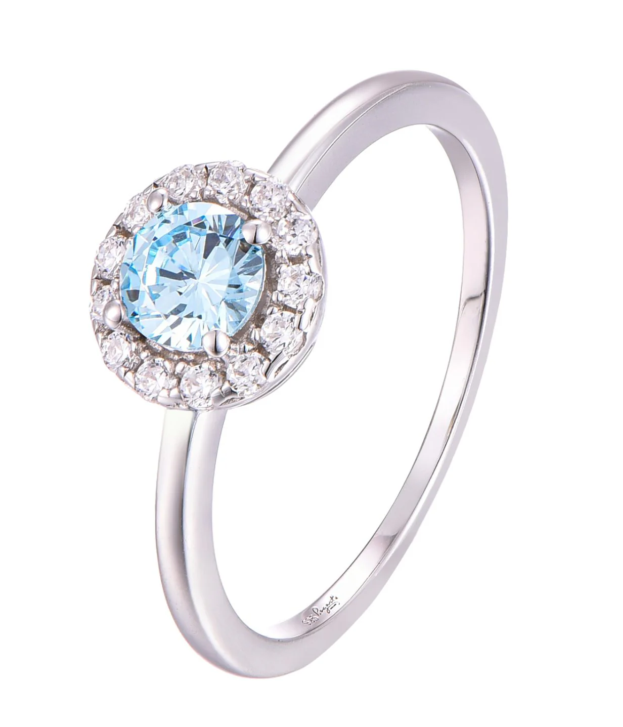 Casablanca Round Halo Sterling Silver Birthstone Ring