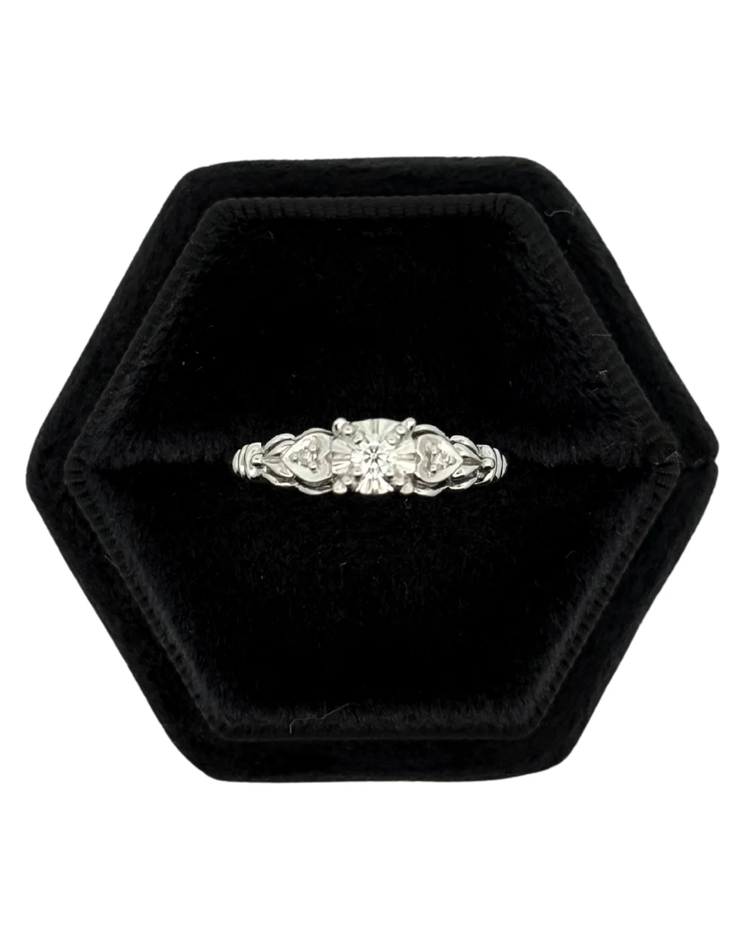 -70%White Gold Round Diamond Engagement Ring With Heart Design—